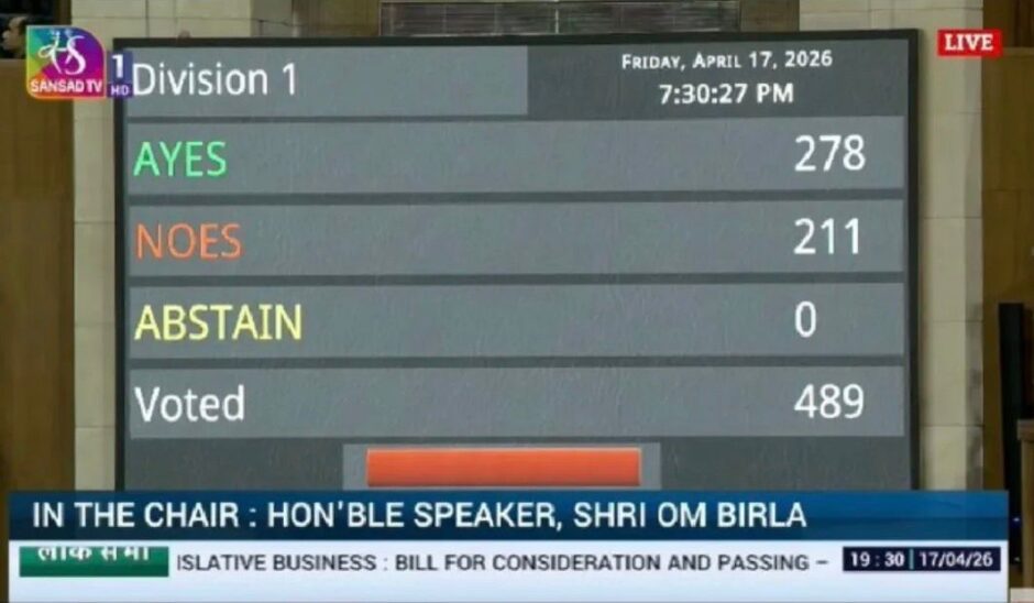 New Delhi: In a dramatic turn of events, the Modi government’s three key amendment bills failed to pass in the Lok Sabha on April 17, 2026. The voting saw 278 ‘AYES’ and 211 ‘NOES’, falling short of the required majority for constitutional amendments.